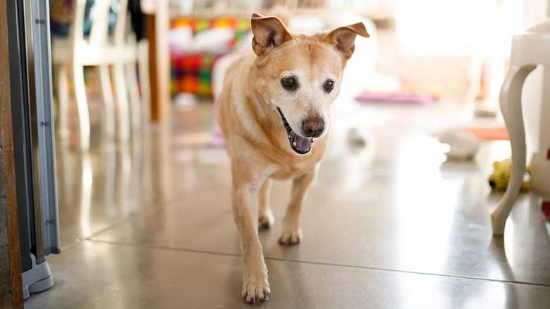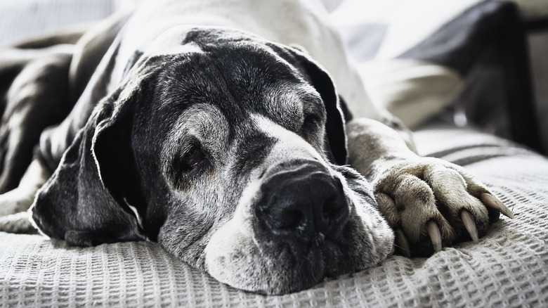 If your dog is diagnosed with dementia, there are many steps you can take to make them feel as comfortable and safe as possible. Per Cornell's Richard P. Riney Canine Health Center, you can start by blocking off stairs and other potentially unsafe areas of your home, respecting their potentially shifting boundaries when it comes to socializing with others, taking measures to assist with their sleep by going on extra walks at night, and sticking to a consistent daily routine. Any measures you take to handle your pup's dementia should be done under the guidance of your vet.