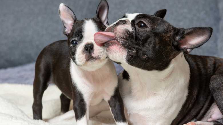 After your dog gives birth, she'll clean up the puppies and, if they haven't been removed from the whelping box, eat their placentas — each dog has its own — to help keep the box clean. It's important to monitor for any signs of distress after giving birth and to check the puppies for any problems. If you do spot any issues, a trip to the vet is best.