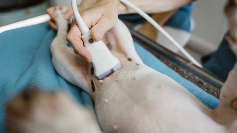 The first half of pregnancy is also when your vet can confirm that your pit bull is pregnant. An abdominal ultrasound is the most common way for your vet to diagnose pregnancy. However, palpation, the act of feeling with the hands during examination, and hormone tests can also be used to confirm it. You can try to palpate your pregnant dog at home to see if you can feel any changes; however, it's always best to confirm your dog is pregnant with your veterinarian.