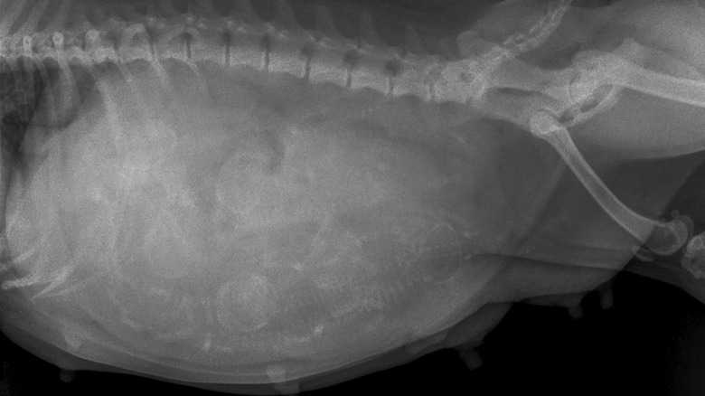 As your dog gets closer to her due date, your veterinarian can confirm the size and number of puppies through an X-ray. The X-ray will pick up the puppy's skulls and vertebrae and can help you estimate the number of puppies to expect. This is beneficial for when your dog goes into labor, as you'll be able to determine when she's had all of her puppies.