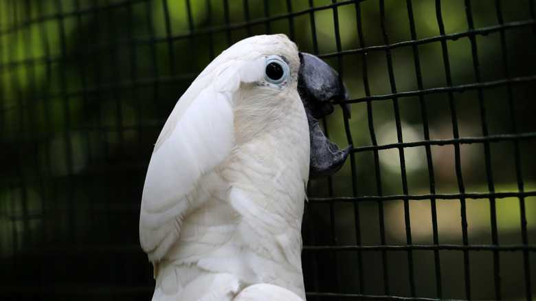 Umbrella cockatoos are tropical birds native to Indonesia, and they have that signature white crest that pops up when they are excited or agitated. In fact, most of their body is white, with the exception of yellow feathers under their wings and tails. They're medium-sized birds that get up to 18 inches in length, but as far as pet birds go, they're quite a presence. Not just physically, either — umbrella cockatoos are birds with big personalities who require an involved pet parent.